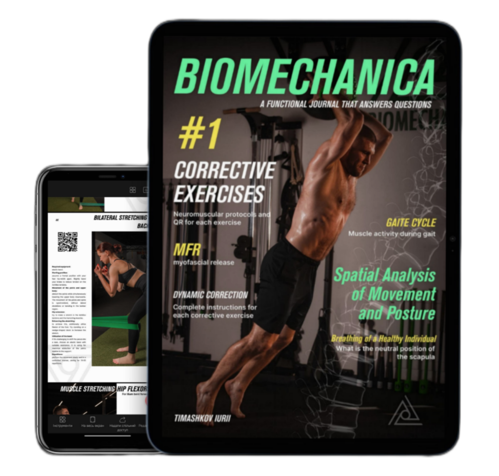 Biomechanica #1 — практичний гайд з аналізу руху, дихання, постави та ходи. Створений для фахівців, які шукають структуровані рішення. У журналі — протоколи, перевірені на практиці, аналітичні підходи для впровадження в роботу, а також вправи з QR-доступом для зручної інтеграції у тренувальний процес.